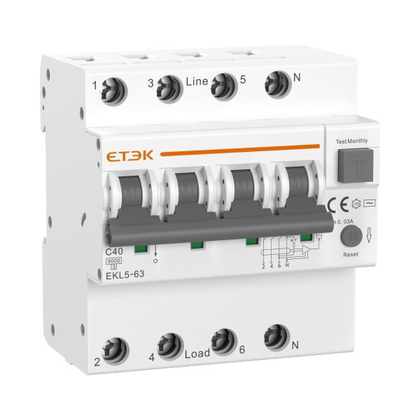 EKL5-63電子式剩余電流動作斷路器適用于交流50/60Hz,額定電壓兩極230V,四極415V,額定電流?63A的商業辦公樓民用住宅及?般工業用途的終端配電線路中,對線路提供過載、短路保護和漏電保護,也可在正常情況下對線路進行不頻繁轉換操作。該產品具備漏電復位按鈕功能,能夠直接判斷短路過載、漏電觸發跳閘、人工分合閘等故障類別,幫助用戶識別并鎖定線路故障點進行快速維修,具有安全、可靠、簡便等特點。
